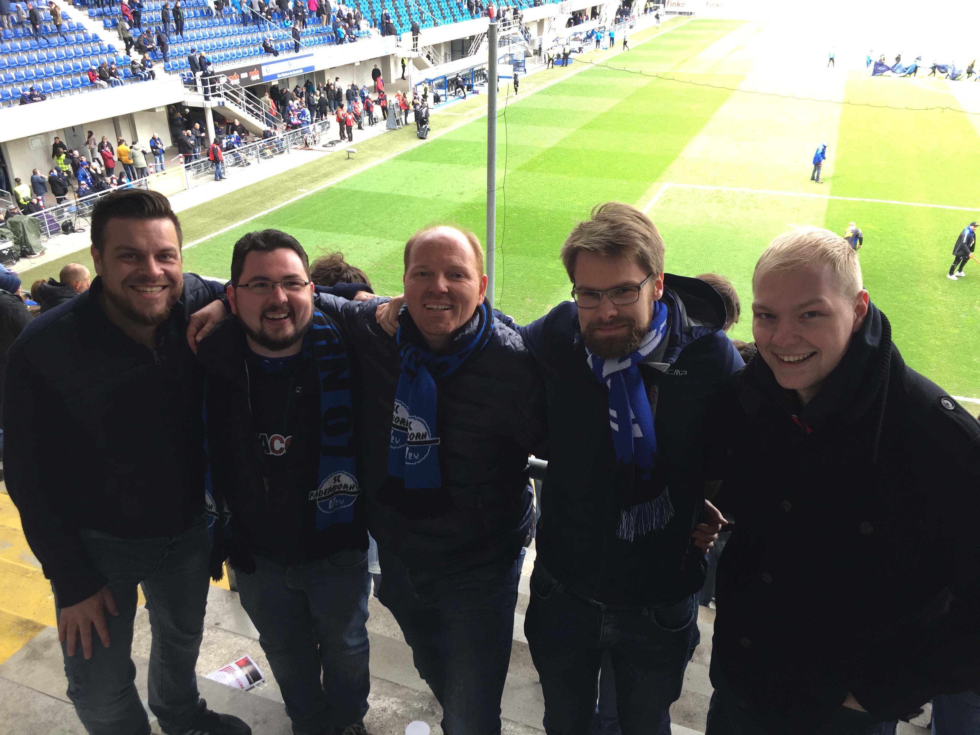 Seitdem hat sich viel getan im PaderCast. Mittlerweile ist die Stammgruppe auf die Typen im Bild angewachsen (v.l. Kevin, Ich, Marco, Stephan und Sebastian).