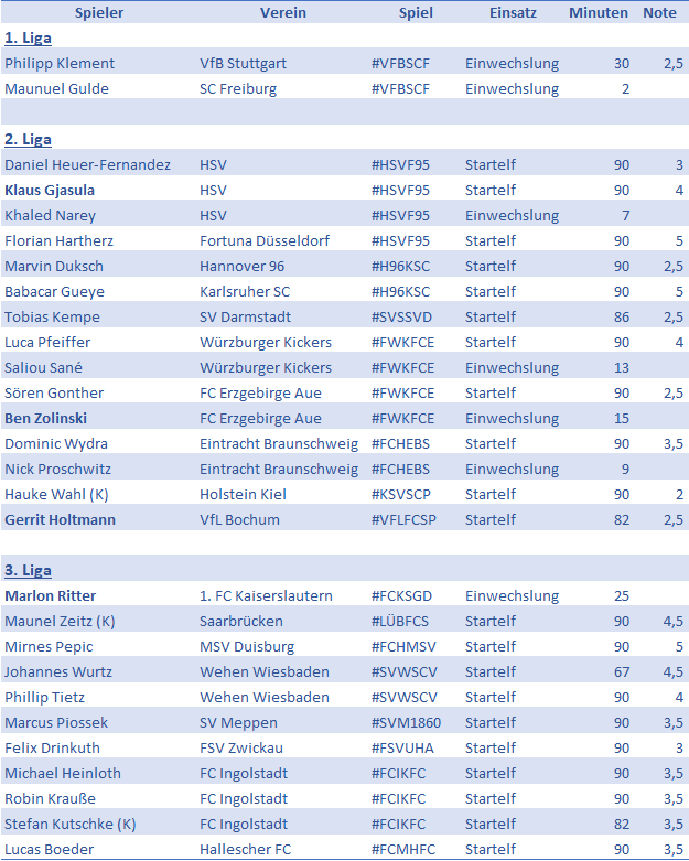 Insgesamt waren dabei 28 Ex-Paderborner auf dem Feld. Die meisten (15) in der 2. Liga. Gefolgt von der 3. Liga (11) und 2 Spieler haben bisher in der 1. Liga einen Einsatz gehabt.